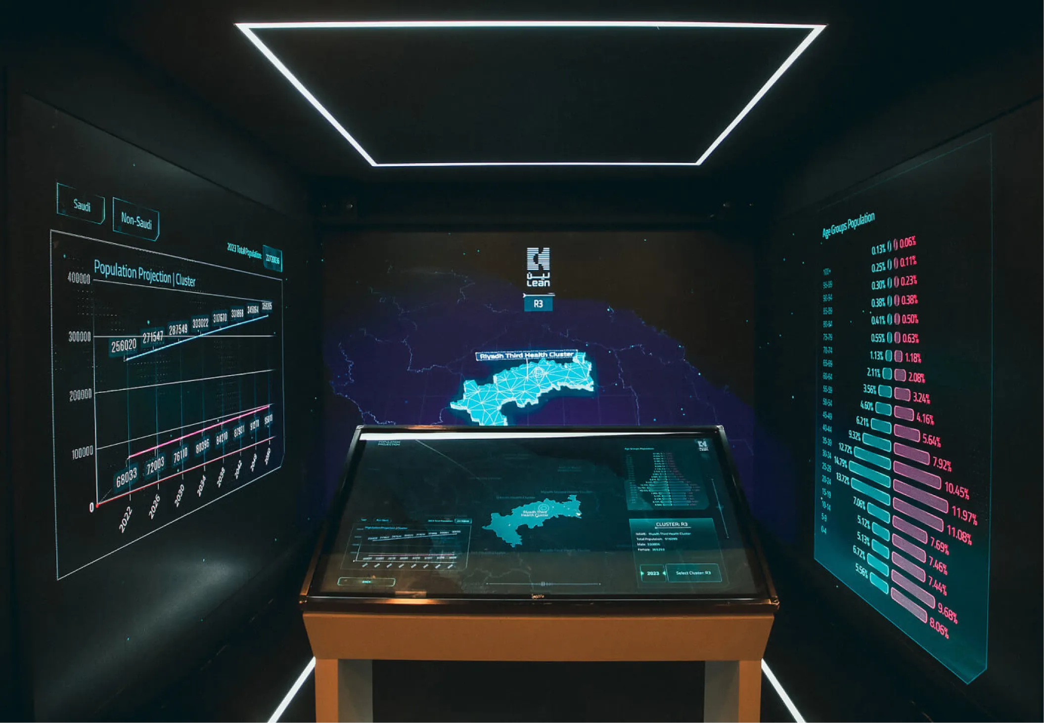 A presenter-controlled interactive system built for high-profile product launches and executive conferences. Complex datasets were transformed into animated 3D infographics that presenters could navigate live on stage — rotating, revealing, and drilling into data at their own pace, making dense information clear and compelling for a live audience.